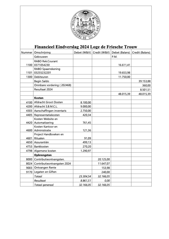 Informatie in de vorm van een verkorte balans over 2022 kunt u hier bekijken, de verkorte balans van 2023 is hier te lezen en de jaarrekening hier. Het Financieel Eindverslag 2024 kunt u hier nalezen. Informatie over het doel van de vereniging en Beleidsplan kunt u hier nalezen.